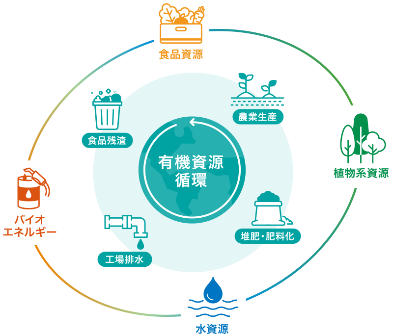 刻々と変化し続ける社会の営みや人々の暮らし。私たちは、そこに存在するさまざまな有機廃棄物を資源化の対象とし、あらゆる視点から価値転換を図ります。既存の概念に捉われることなく新たな価値を発掘し、次世代の循環型社会の一端を担うソリューションを追求します。